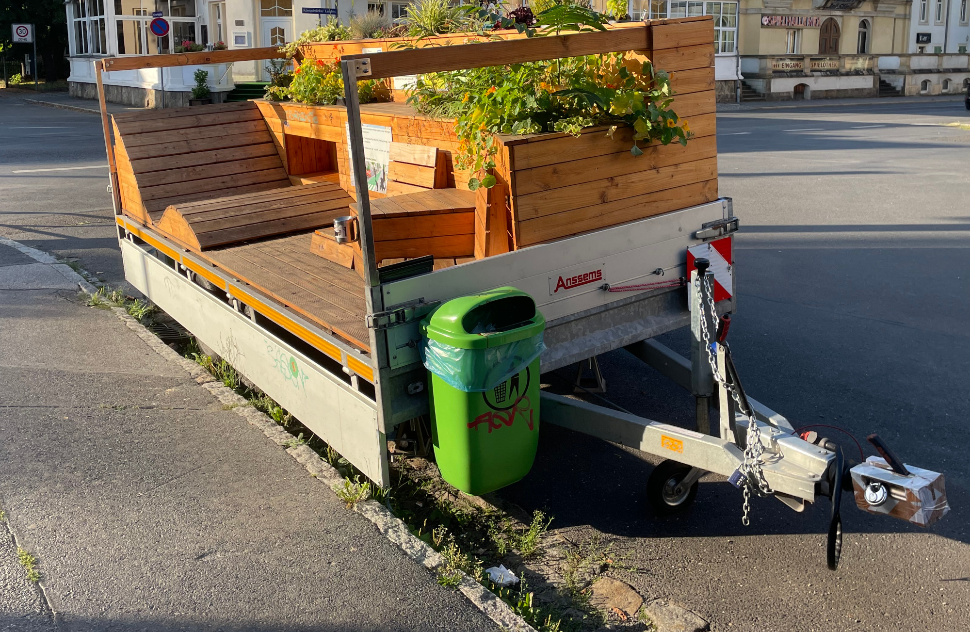 Das „Mobile Parklet“ ist 2022 im Rahmen des Projektes Zukunftsstadt Dresden entstanden. „Ziel des Projektes ist es, Menschen zu ermutigen, sich mit Ideen für eine gerechtere, lebenswerte und nachhaltigere Gestaltung des öffentlichen, innerstädtischen Straßenraums auseinanderzusetzen. Das bedeutet den Status quo der Dominanz von Fahrzeugen des motorisierten Individualverkehrs nicht länger als alternativlos hinzunehmen“, heißt es dazu in der Projektbeschreibung.