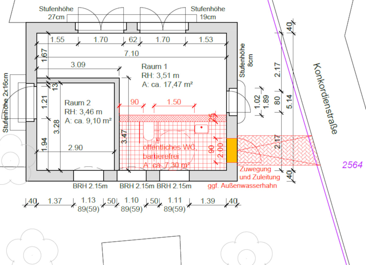 Die Reparaturen nach Vandalismus an den Türen seien einfach zu hoch, sagte sie. Der Zugang soll von der Konkordienstraße aus über ein gepflasterte Rampe erfolgen. Die Kosten von 1.500 Euro pro Monat für den Unterhalt inklusive täglicher Reinigung müssten künftig ebenfalls aus dem Budget des Stadtbezirkes finanziert werden. Die Beiräte stimmten dem Vorhaben einmütig zu.