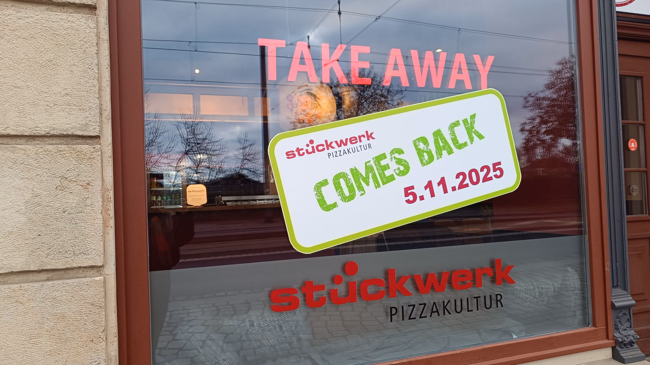 Der Wiedereröffnung ist eine mehrmonatige Schließzeit vorausgegangen. Nun ist die Filiale des Pizza- und Pastaanbieters „Stückwerk“ seit 5. November am Start. Die Bestelltheke ist wieder in Betrieb, und das Angebot reicht von Pizza und Pasta bis hin zu Bowls und Snacks – zum Mitnehmen, Liefern oder direkt vor Ort genießen. In den Fensternischen sind gemütliche Sitzecken eingerichtet. „Wir wollen ja keinen Platz verschenken“, meint Mandy Bein, Leiterin der Pieschener Filiale gemeinsam mit Ronny Schindler. Das Vater-Tochter-Duo leitet ein Team von rund fünfzehn Mitarbeitenden. Mandy Bein ist gelernte Fachkraft für Systemgastronomie und arbeitete zuvor in der „Stückwerk“-Filiale in Striesen.