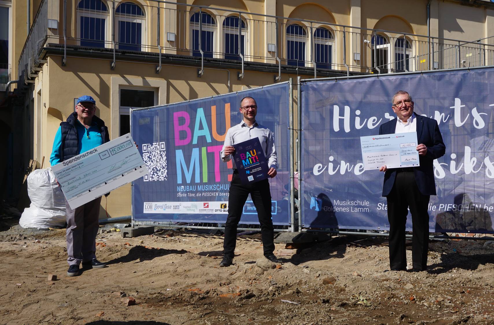 Die Musikschule „Goldenes Lamm“ durfte gestern zwei weitere Großspenden für den Bau des neuen Schulgebäudes entgegennehmen. Die insgesamt 27.500 €