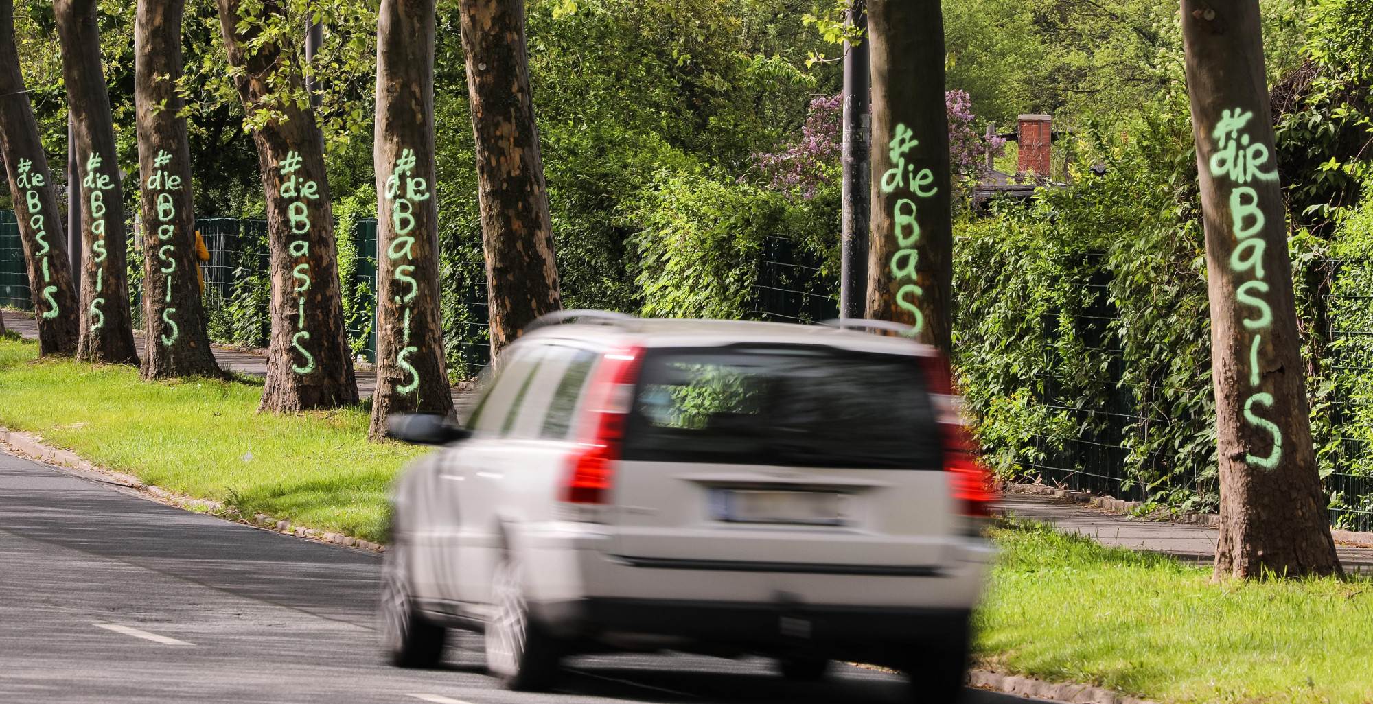 In der Nacht zum Dienstag haben bislang Unbekannte entlang der Hansastraße mehr als 20 Bäume mit hellgrüner Farbe besprüht. Im