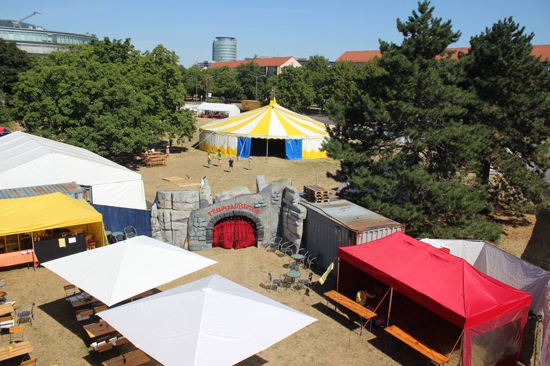 Von Donnergrollen und Regenwolken noch keine Spur am letzten Morgen von St. Pieschen. Die Heiligen den Stadtteilfestes haben sich versammelt: