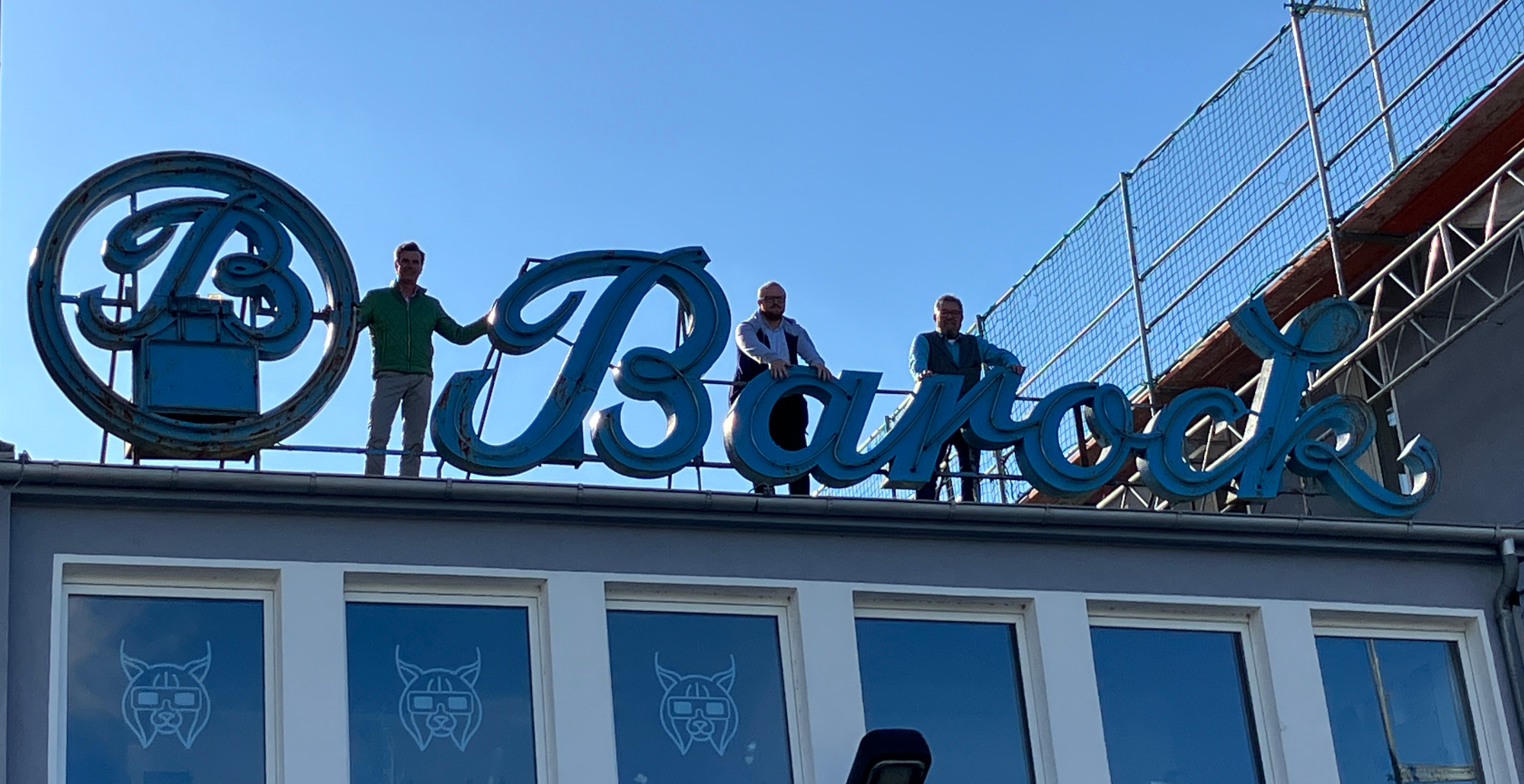 Der Schriftzug Barock auf dem ehemaligen Fabrikgelände des Tintenherstellers in der Emilienstraße in Kaditz wird wieder in altem Glanz erstrahlen.