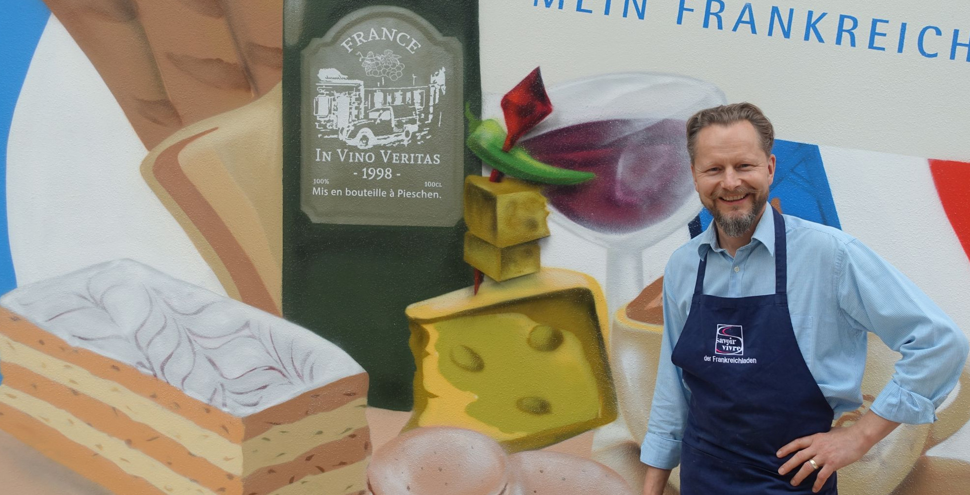 Seit heute ziert ein großes und farbenfrohes Graffiti die Giebelwand des Frankreichladens in der Bürgerstraße. Das alte Bauernhaus, das Uwe