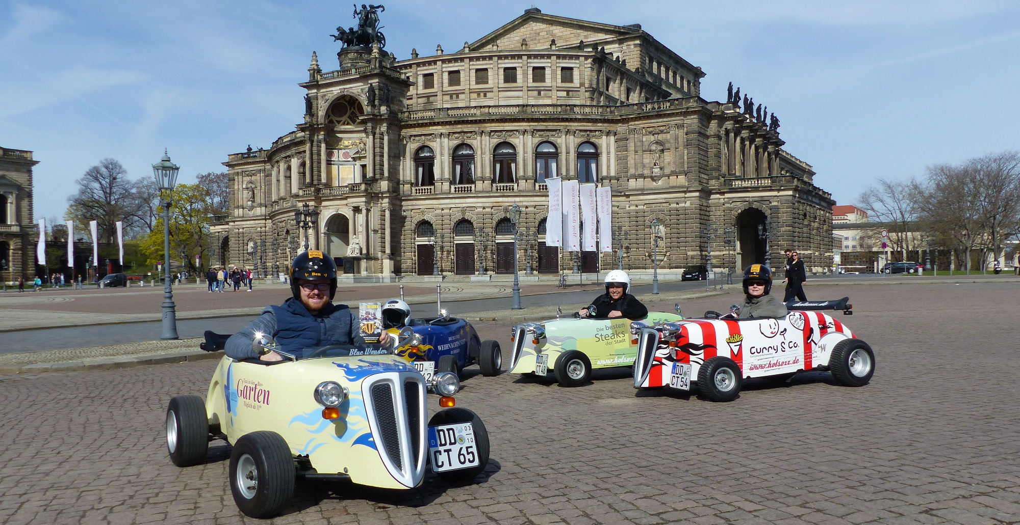 Eine Tour mit den Mini-Hot-Rods durch Dresden ist immer auch eine Stadtrundfahrt der besonderen Art. Ganz neu bietet das Team