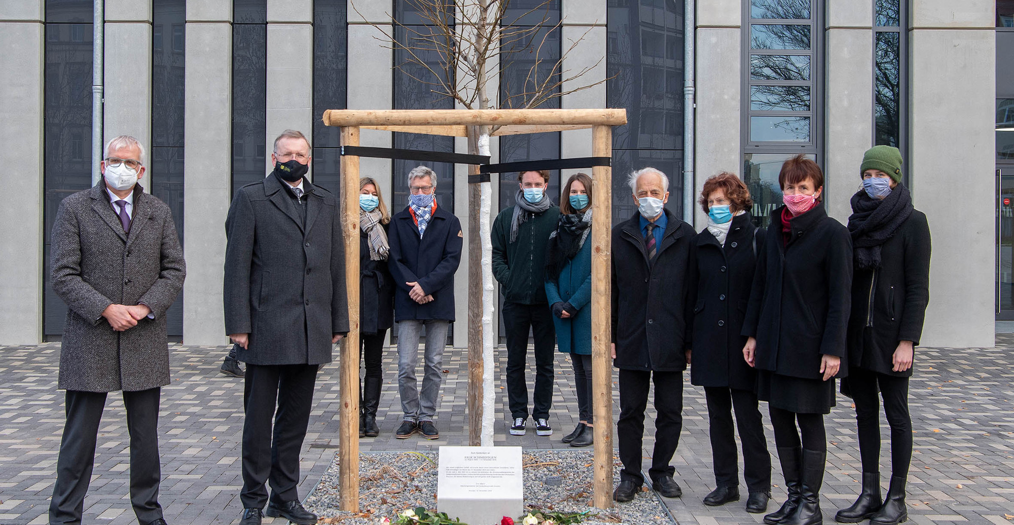 Am Schulcampus Gehestraße erinnern jetzt ein Amberbaum und eine Gedenktafel an den ehemaligen Dresdner Schulamtsleiter Falk Schmidtgen. Er war am