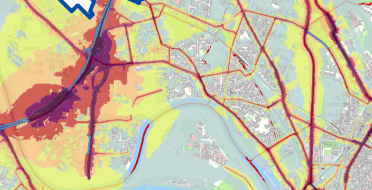 Washingtonstraße, Leipziger Straße, Großenhainer Straße und Hansastraße – die Lärmschwerpunkte im Stadtbezirk Pieschen sind deutlich auf dem Lärmatlas im Themenstadtplan