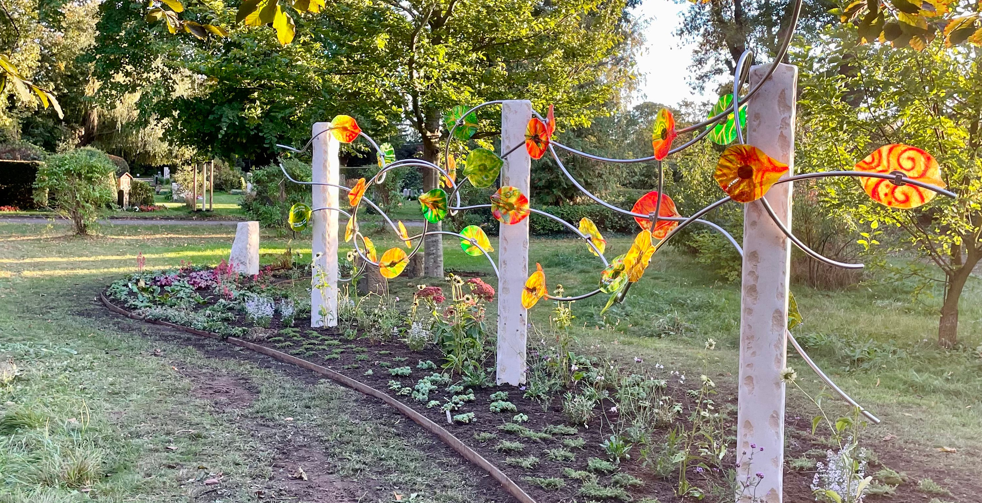 Der Friedhof in Dresden-Kaditz bietet ab 2024 ein neues Bestattungsangebot an. Die neue Grabanlage „Blätter im Wind“ wurde im September