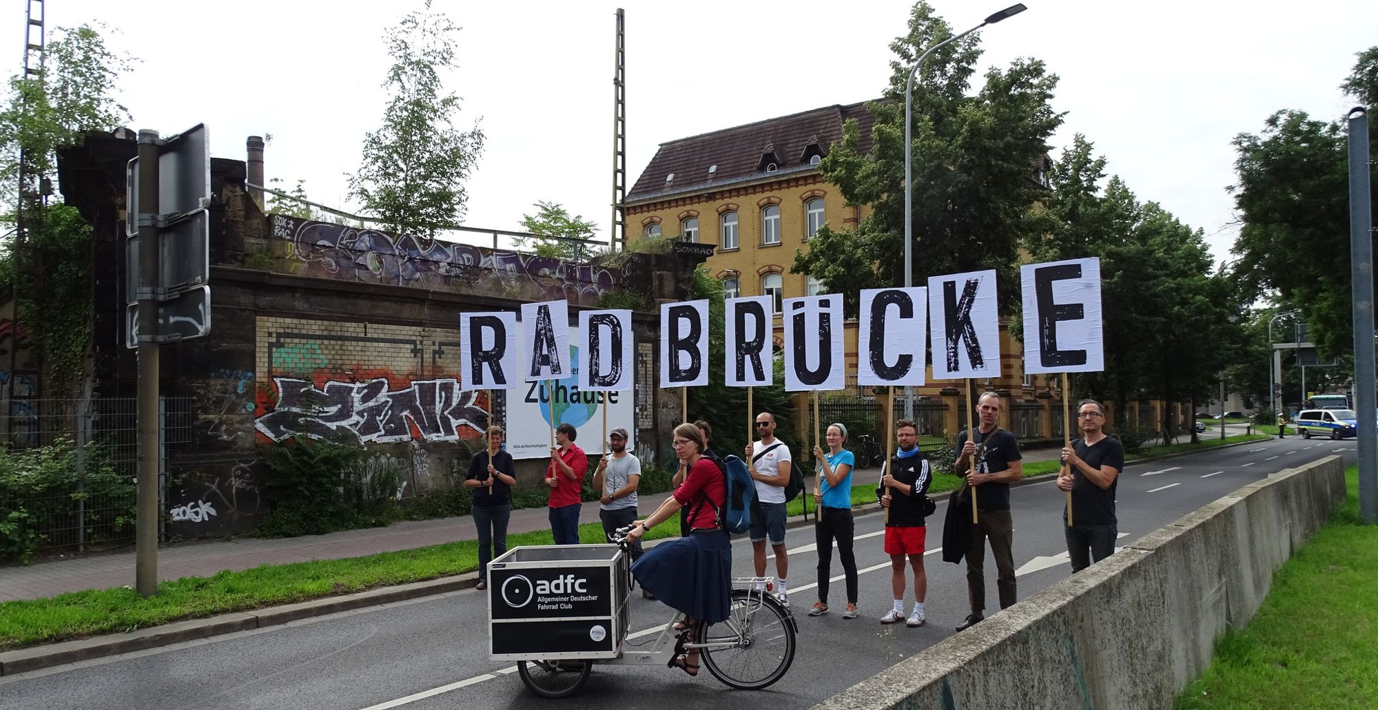 Die Hansastraße am Bahnhof Neustadt stadtauswärts war heute Vormittag für gut zehn Minuten gesperrt. Aktivisten vom ADFC Dresden standen auf