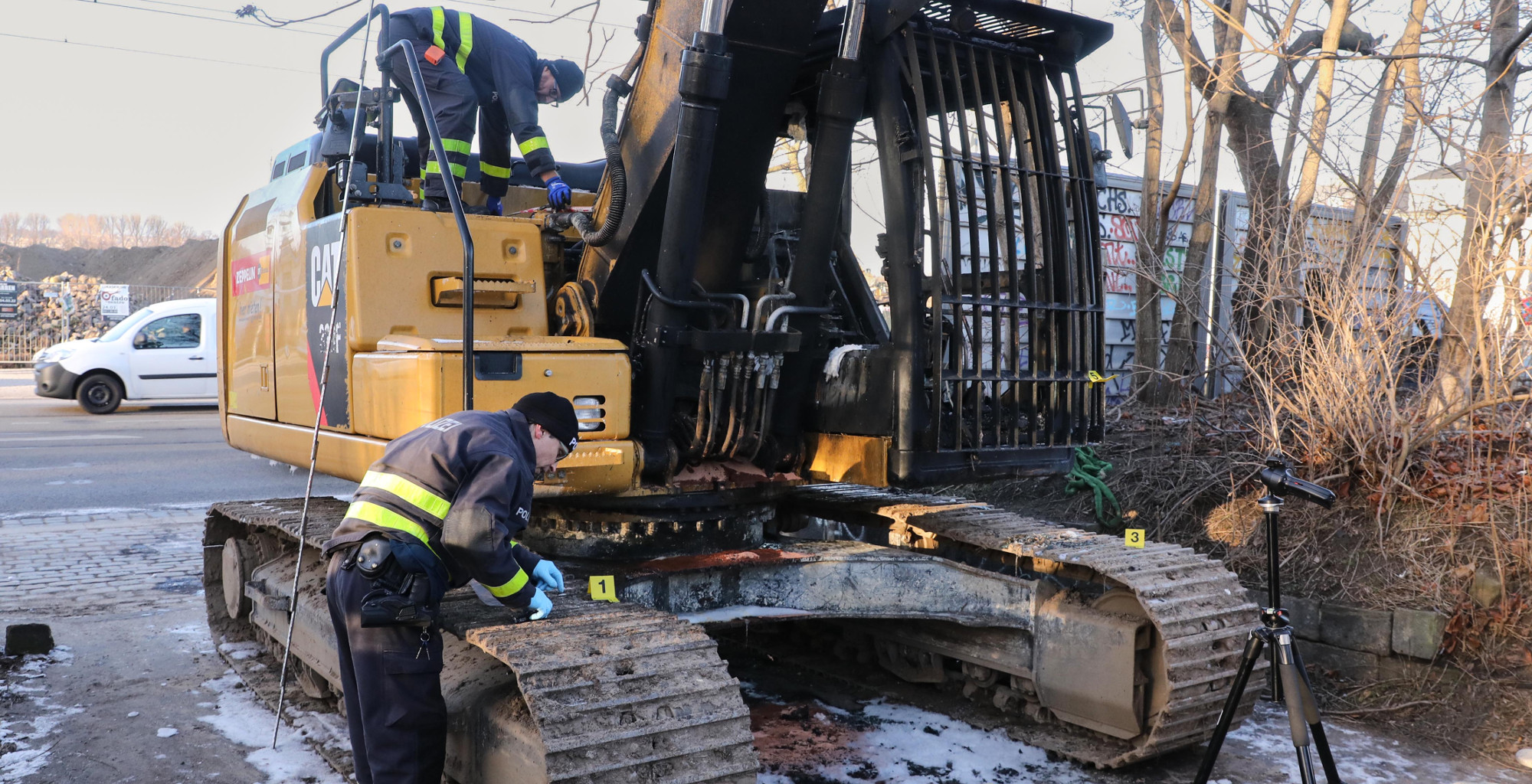 Nach dem eines Kettenbaggers in der Leipziger Straße haben die Staatsanwaltschaft Dresden und die PTAZ (Polizeiliches Terrorismus- und Extremismus- Abwehrzentrum)