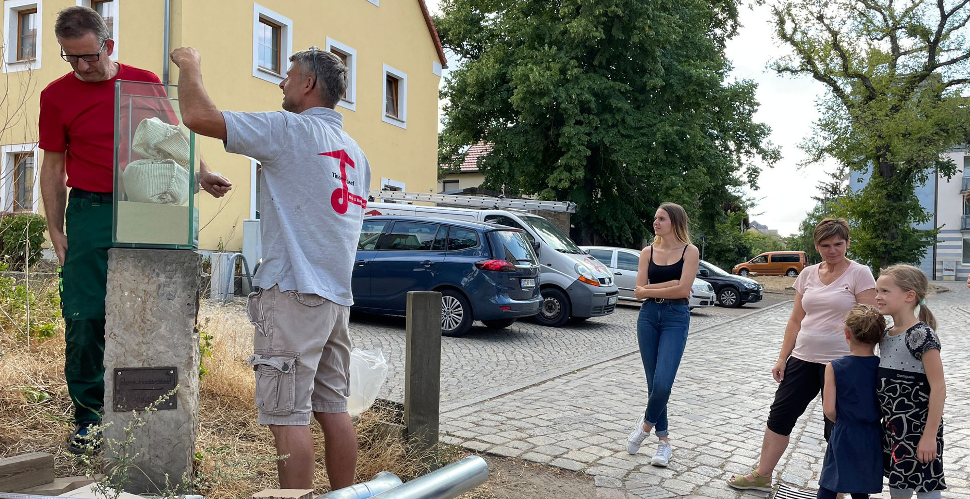 Die Hochwassersäule in Altübigau glänzt wie neu. Sie zeigt den Stand der Elbe im Jahr 2002 – 9,40 Meter. Zwanzig