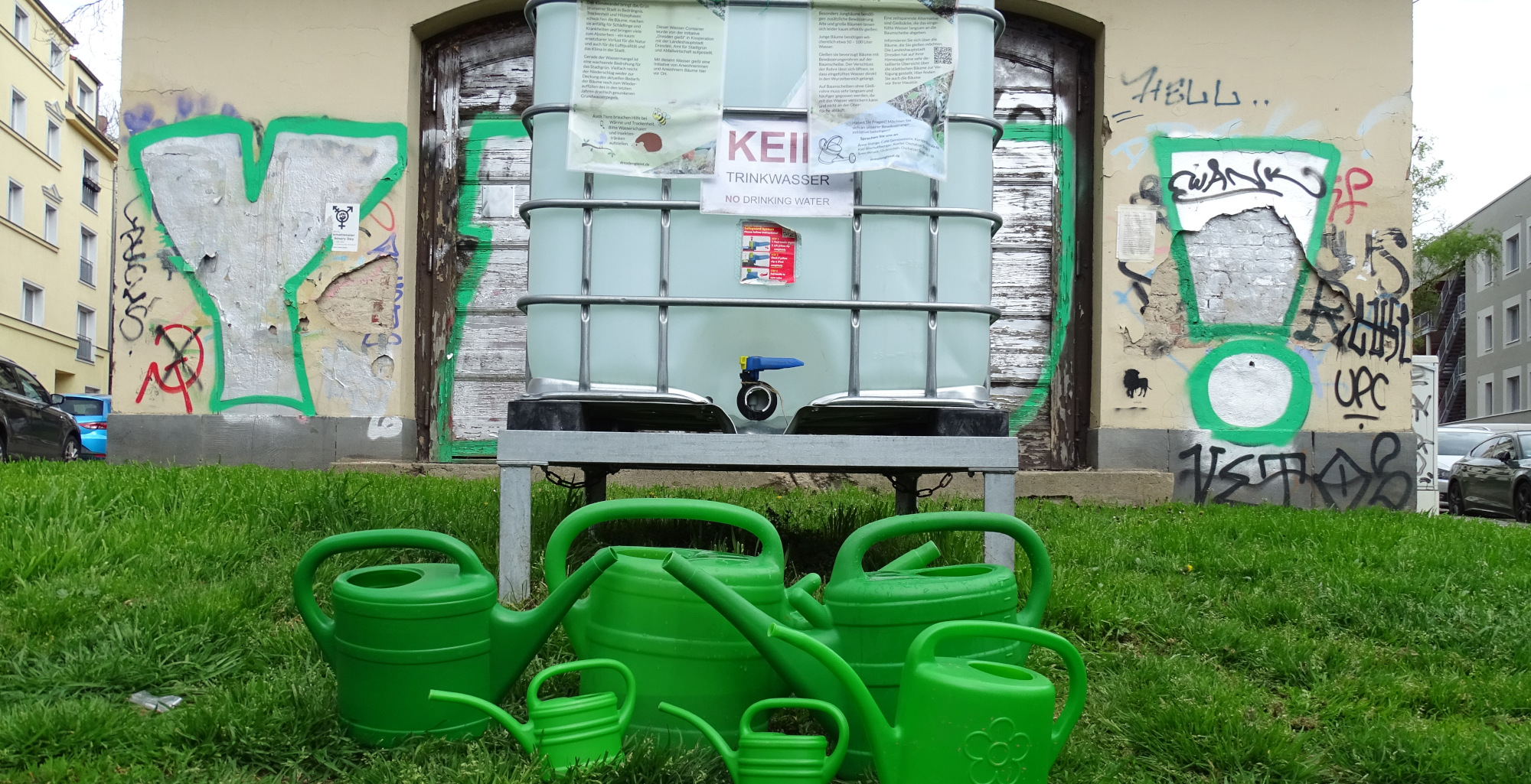 Jeden Mittwoch um 17 Uhr treffen sich in der Sommerzeit Freiwillige am Wassercontainer auf dem Konkordienplatz. Seit 14. Juni sind