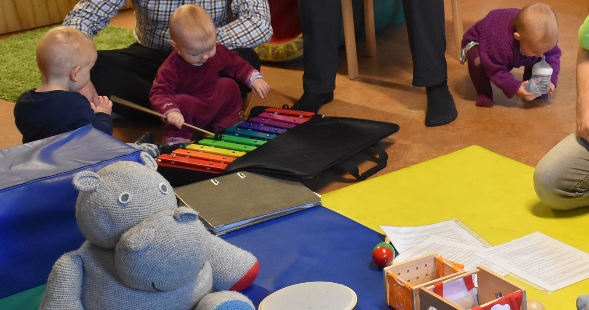Dienstagvormittag 9.30 Uhr. Weiche bunte Matten liegen in einem Kursraum des Kinder- und Jugendhauses „Emmers“ auf dem Boden verteilt. Während