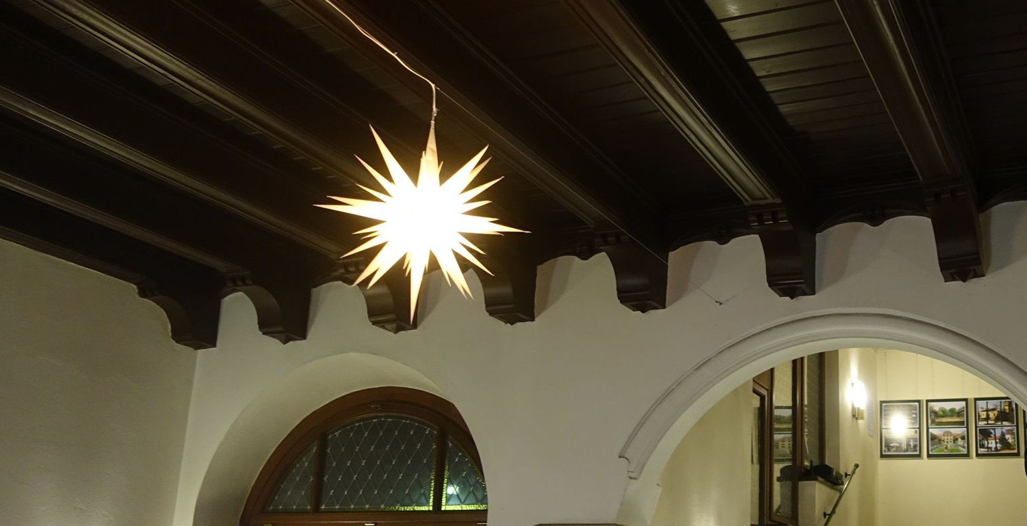 Seit gestern Nachmittag leuchtet im Foyer des Rathauses Pieschen wieder der Herrnhuter Stern. Mitgebracht hatten ihn Erdmute Frank, Pfarrerin, und