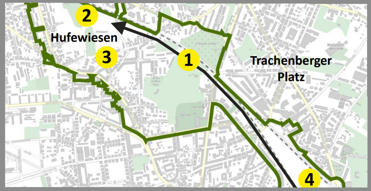 Ein durchgehendes grünes Band könnte sich aus Sicht der Stadtplaner von Trachau bis zum Alten Leipziger Bahnhof ziehen. Für den
